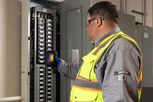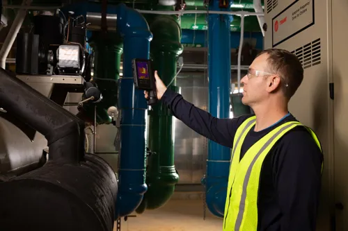 When using an infrared camera for maintenance inspections, safety is non-negotiable. The Flir iXX-Series helps you reduce safety risks and improve decision-making with high-resolution thermal imaging, glove-friendly controls, and wide fields of view—ideal for inspecting energized equipment through IR windows. Use the Meterlink® app to capture load, voltage, and other electrical measurements alongside thermal data, giving you the complete context to prioritize repairs and prevent outages.