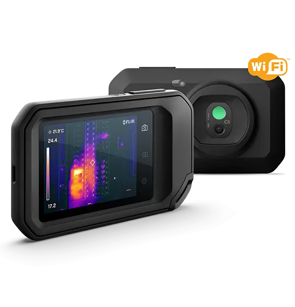 With the FLIR C5 in your pocket you’ll be ready anytime to find hot fuses, air leaks, plumbing issues, and more. Identifying hidden problems is easy with the 160 × 120 (19,200 pixels) true thermal imager, MSX® (Multi-Spectral Dynamic Imaging), 5-megapixel visual camera, and LED flashlight. The C5 directly uploads and stores your images to the FLIR Ignite™ cloud, where you can organize and back up files. Then instantly share images with customers or create professional reports that document the problem and required repairs.